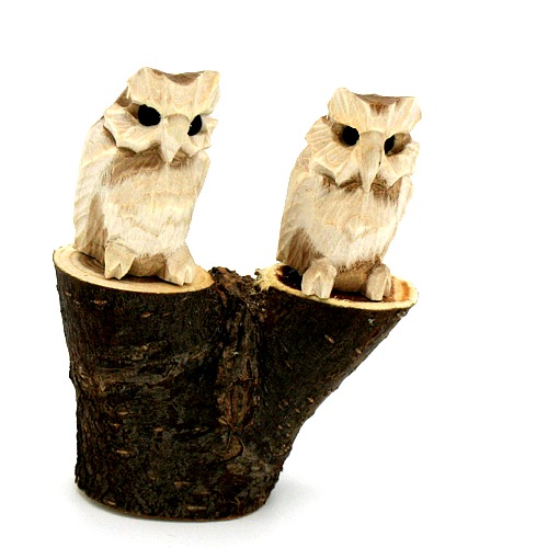 北海道 上川町 層雲峡温泉 伊澤民芸 コタンコロカムイ シマフクロウ 2羽 槐(エンジュ)木彫り ふくろう 梟 置物 ギフト プレゼント お取り寄せ