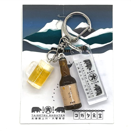 旭川 コガタ食堂 とうきびビール オリジナルキーホルダー 北海道 層雲峡温泉 ホテル大雪 ミニチュア雑貨 通販 お取り寄せ